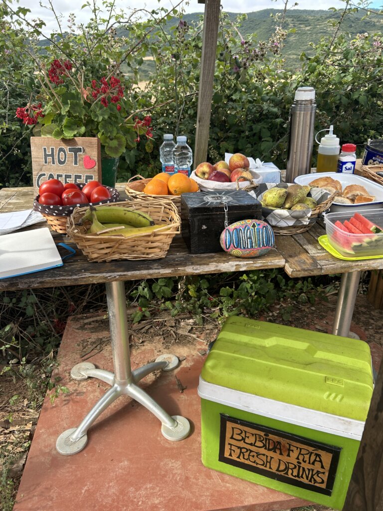 On several occasions, the path gave way to donation stands offering assortments of fruit, biscuits, nuts, and coffee. These often appeared as if out of nowhere, and usually when I was in need of a pick-me-up. The volunteers who ran these either lived on-site or drove in for the day with a car full of supplies. A donation box sat unassumingly on the tables: take what you need, and leave what you can. Volunteers contributed to many other services on the Camino, including working in hostels and at towns’ pilgrim offices. Many of them had previously walked the Camino themselves and returned to volunteer.
